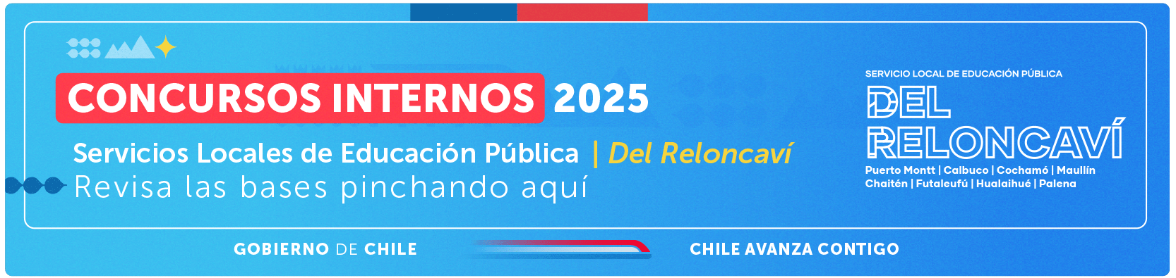 El Servicio Local de Educación Pública Del Reloncaví a cargo de la administración de los jardines, escuelas y liceos públicos de Puerto Montt, Calbuco, Cochamó, Maullín, Chaitén, Futaleufú, Hualaihué y Palena.